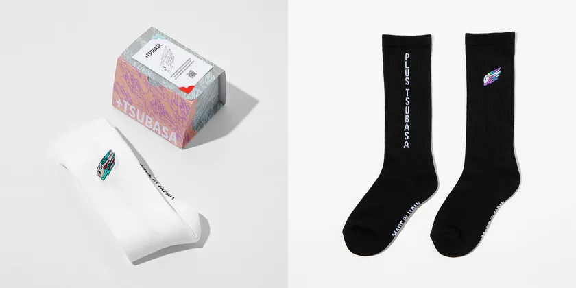 本物のスニーカーとアートの中のスニーカー。リアルと2次元でのお揃いをお楽しみいただけます。また、カルヴィンによるプラスツバサのアイコンデザインのソックスや、天然素材100%で作られたスニーカー専用抗菌パフュームなどのアイテムも登場。