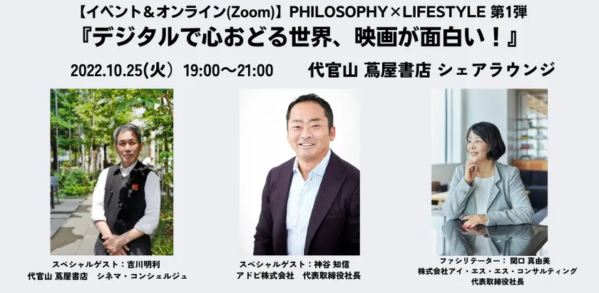 アドビ日本法人社長、 代官山 蔦屋書店 シネマ・コンシェルジュが語る 『デジタルで心おどる世界、映画が面白い!』 イベント&オンライン10/25(火)開催