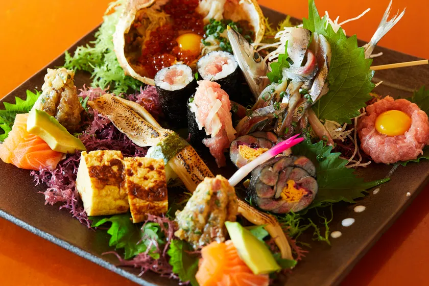 *旬の魚介を豪快に使用。元魚屋の割烹料理屋が味と見た目にこだわるアテ巻きを開発