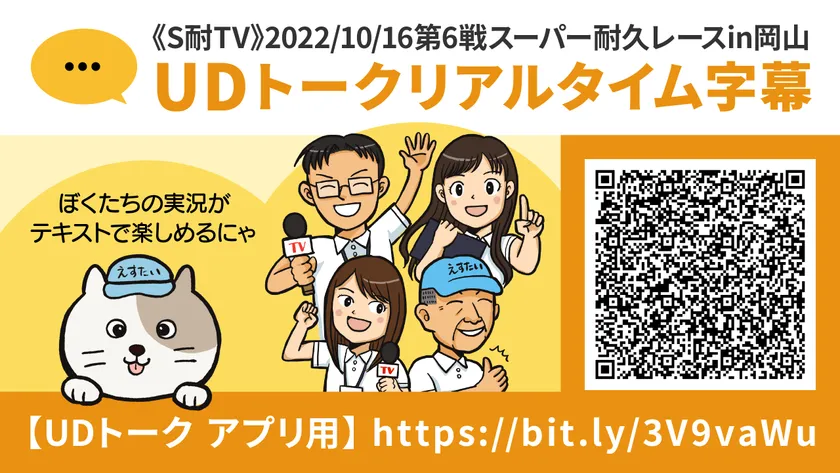 スーパー耐久レースのYouTubeチャンネル「Super Taikyu TV/Stai TV」( https://www.youtube.com/channel/UC8sfQKfk_4_JePSHSupvT4w )で放送されるレースを対象に、聴覚障がいの方向けの情報保障「リアルタイム字幕」を提供します。