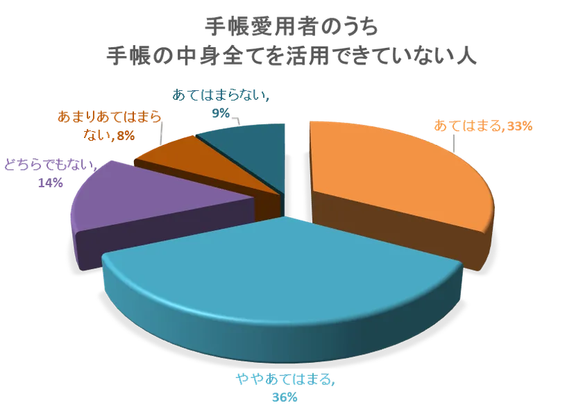 調査の結果、手書きの手帳を愛用しているにも関わらず、中身を活用しきれていないという悩みが70%という回答が出ています。
