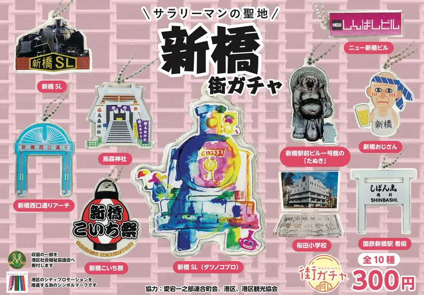 サラリーマンの聖地 新橋の魅力がカプセル入り キーホルダーになった「新橋街ガチャ」10/14より販売開始