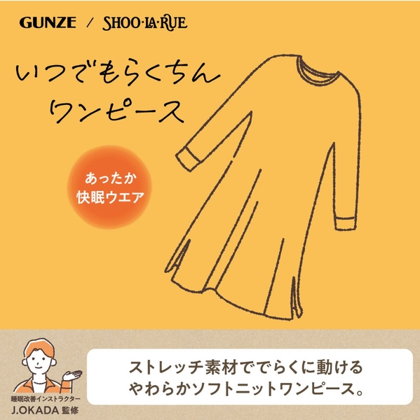 ワールドグループの株式会社アルカスインターナショナルが展開するレディスのファッションブランド「SHOO・LA・RUE(シューラルー)」は、着心地にこだわったライフウェアを提案する「GUNZE(グンゼ)」と共同開発した、冬の夜を暖かく、快適に過ごせる「快眠ウェア」シリーズを8月25日(金)より順次販売をスタートいたします。