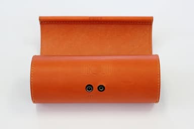 “巻物”がモチーフの本革製iPad対応コンパクトスピーカー。革はヨーロッパ最高峰であるベジタブルタンニンオイルレザーを使用。多色展開。