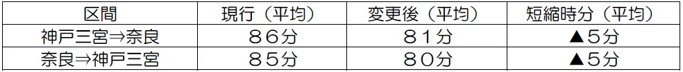 神戸三宮・奈良間の所要時分