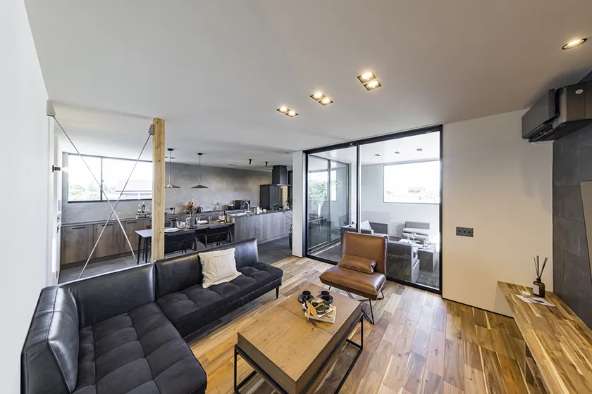 LDKからフラットにつながる大きなアウトドアリビングが特徴のGLAMP