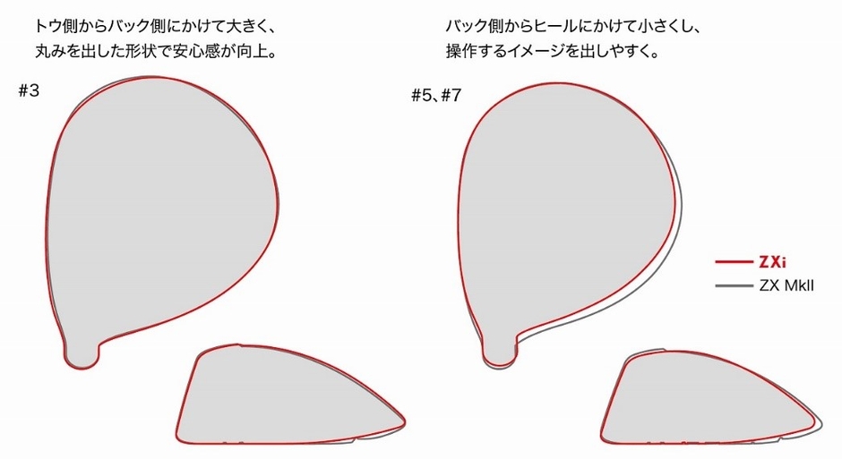 番手ごとの目的に合わせたサイズながら、丸みのあるヘッド形状に統一することで、異なる番手でも違和感なく構えられます。