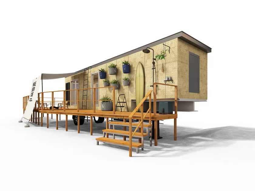 ・全長12m 幅2.5m 高さ3.8mのサイズで構築された高断熱高気密木造ユニット