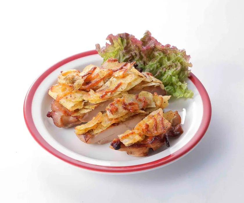 湖池屋ポテトチップスのり塩と鶏もも肉のチーズ焼き(1枚) 648円〈各日数量限定〉