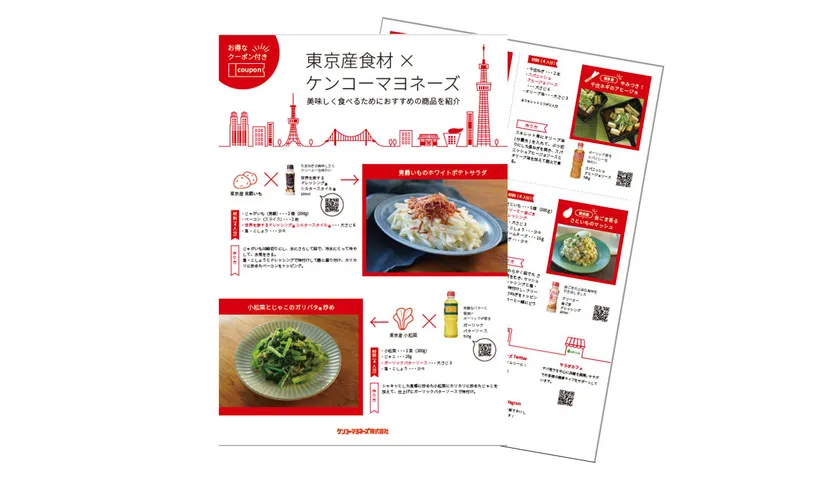 ケンコーマヨネーズ株式会社(本社:東京都杉並区、代表取締役社長:炭井 孝志、以下「当社」)は、2022年10月28日(金)・29日(土)・30日(日)に開催される『東京味わいフェスタ2022(TASTE of TOKYO)』にて、当社製ドレッシングや、ドレッシング等と東京産野菜をつかったレシピと当社ECサイトで使用できる500円OFFクーポンを掲載したオリジナルリーフレットを数量限定で無料配布します。
