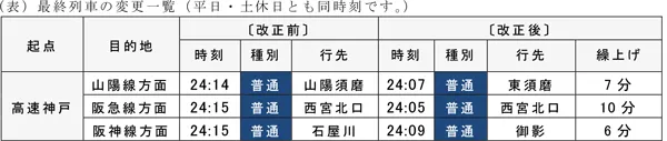 ※1:現行23:00発 山陽姫路ゆき直通特急は、東須磨ゆき特急(最終)に変更します。