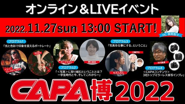 人気写真家の撮影講座やトークショーなど盛り沢山!「CAPA博2022」をリアル&オンラインで11/27開催します
