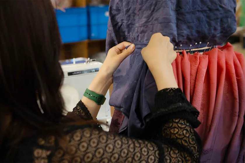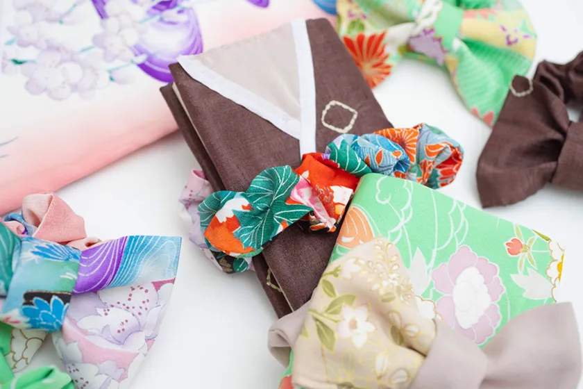 この度、本プロジェクトの成果展示も兼ねて、阪急うめだ本店10階『うめだスーク』中央街区にて、在学生や卒業生による、着物やネクタイ、ベルトなどの廃棄物を活用したアート作品の販売会を開催いたします。