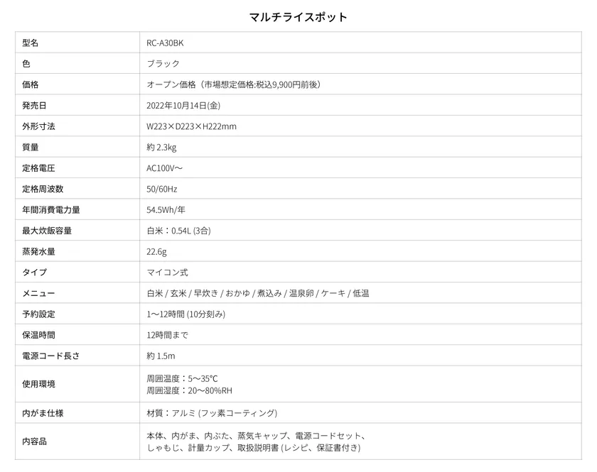 【新製品】ミニマルなデザイン、豊富な調理機能が、 これからの炊飯器のニューノーマル。 「マルチライスポット」がA-Stageから発売