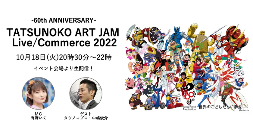 株式会社日テレ7(本社:東京都港区、代表取締役社長:大関雅人)は、タツノコプロ60周年を記念して10月18日(火)~10月31日(月)の期間で開催の西武渋谷店B館5階=プロモーションスペースで行われる人気クリエーター・ブランドとのコラボイベント「TATSUNOKO ART JAM 2022」をライブ中継し、一部の商品をライブコマース・自社ECサイトにて販売いたします。