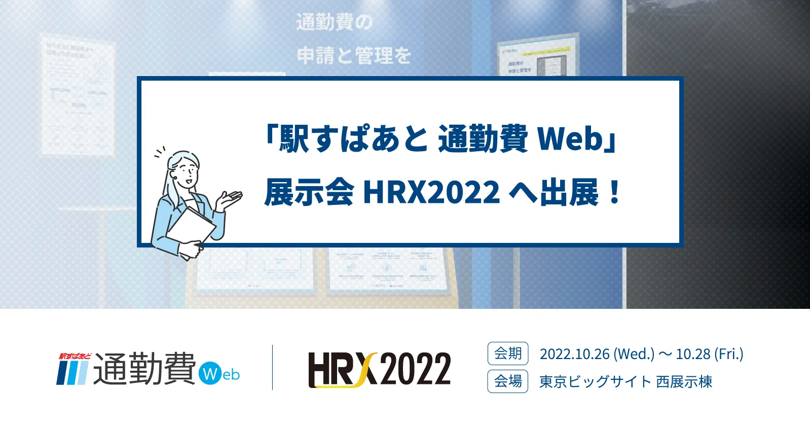 この度の「HRX2022」での出展においては、運賃改定対策へのご相談の受付のほか、「駅すぱあと 通勤費Web」のデモ画面をご覧いただきながら業務がどう軽減されるかをご紹介いたします。