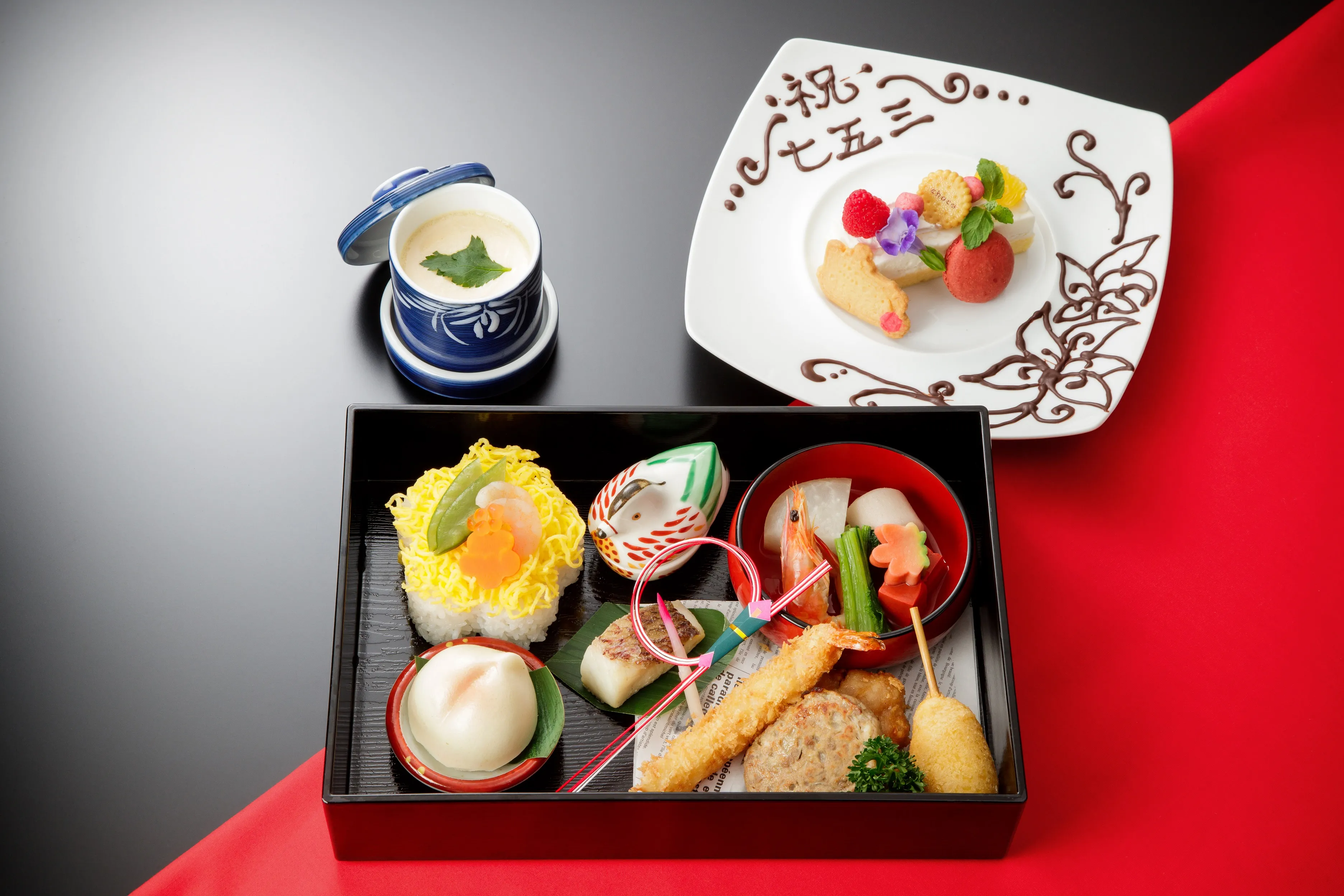 | 特製のお祝い膳をご用意 ミシガンシェフが腕によりをかけた、七五三のお祝いにふさわしいお料理を詰め込んだお祝い膳です。 |