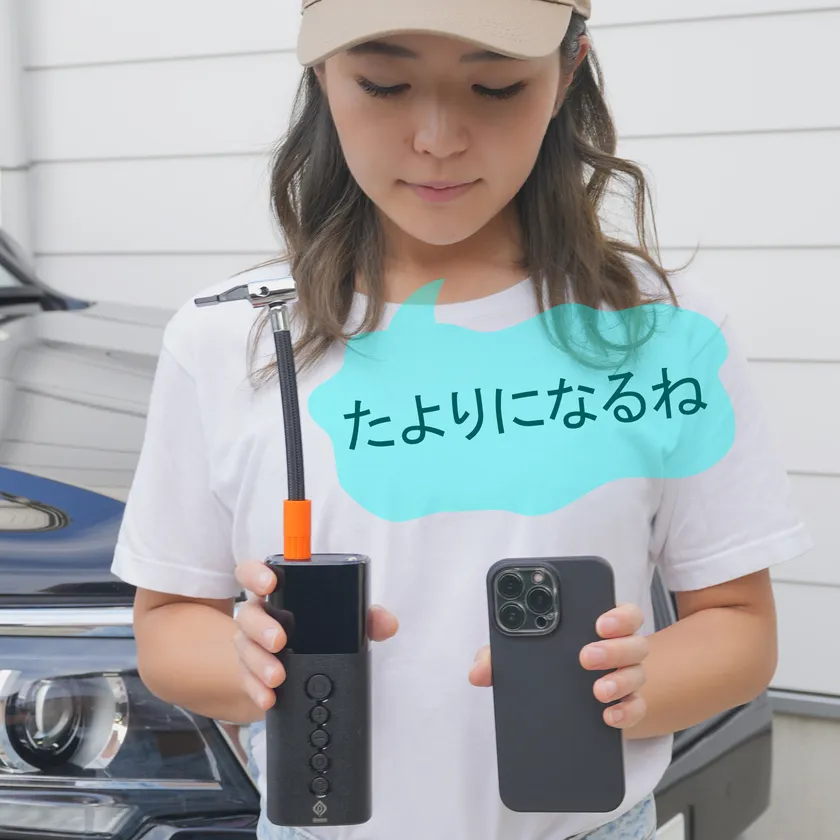 ■[電動空気入]としては十分小さいけれど・・・「バイクキャンピングやサイクル・ツーリングなどアウトドアに、もっと気軽に持ち出せるサイズが欲しい。」というお声が多く寄せられ、ご要望にお応えするかたちでの今回の発表となりました。