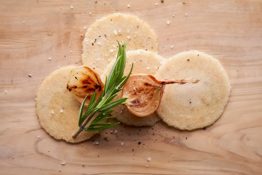 有機玉ねぎの力強い味にローズマリーの華やかな香りでローストオニオンをイメージ。アクセントに燻製黒コショウを効かせました。