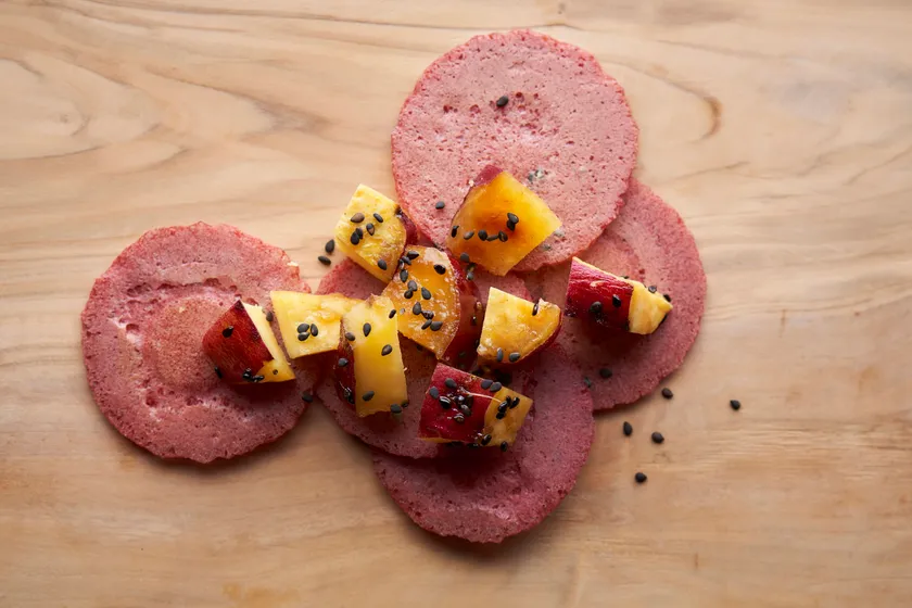 2種類の有機さつまいもに有機メープルを加え、有機黒ゴマをトッピング。リッチなスィートポテトをイメージしました。