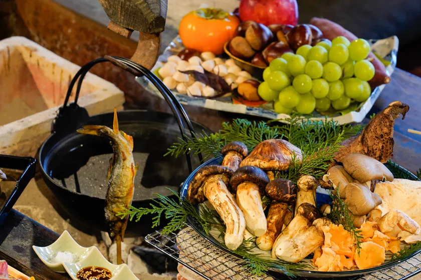<秋の味覚の王様・松茸を贅沢に使用。やま星自慢の囲炉裏会席秋冬メニュー>