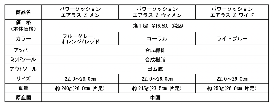 本製品はメンズ、ウィメンズに4Eサイズのワイドモデルを加えた幅広いラインナップを展開。ラチャノック・インタノン(タイ)やキャロリーナ・マリン(スペイン)、廣田彩花(丸杉)が使用予定です。