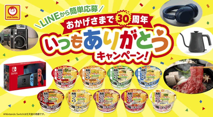 お客様の日頃のご愛顧に感謝し、「麺づくり」シリーズにて、消費者の皆様に向けた、マルちゃん 麺づくり「おかげさまで30周年 いつもありがとうキャンペーン!」を実施いたします。