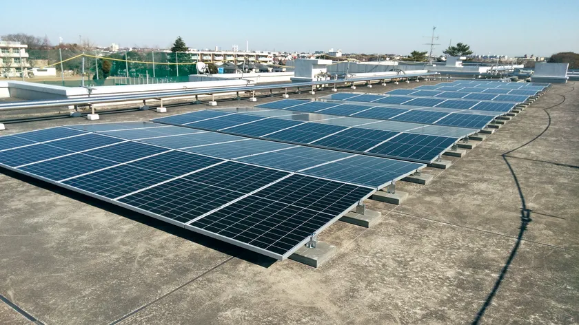 【最大瞬間風速102m/sにも耐える、フラット屋根専用の太陽光発電システム】