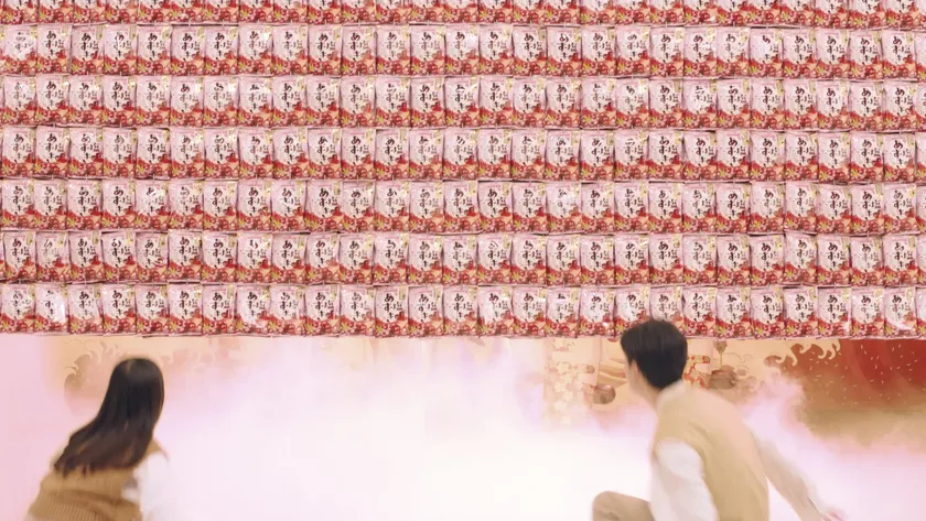 とあるお店のキャンディ売り場にやってきたカップル。はじめて見る塩あずきに興味を持っていると突然、売り場の棚が緞帳(どんちょう)のように上にあがり...なんとその後ろから、石川さゆりさんとバックダンサーが登場!塩あずきのCMソングを歌って踊るというストーリーです。歌は全部で4バージョン。歌詞は塩とあずきの「出会い」から「一緒になる」までの物語となっています。石川さゆりさんご本人が作詞したバージョン「恋するあずき」篇にも注目です。