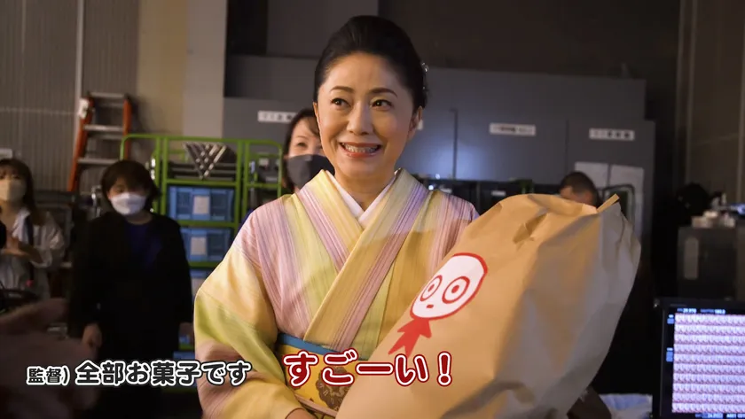 CMオファー前から塩あずきのファンという石川さゆりさん。大のお菓子好きとのことで、現場にあるたくさんのUHA味覚糖の商品に終始ワクワクしつつ、撮影がスタート!塩あずき(※中身は空の商品を使用)が吊り下げられた緞帳(どんちょう)の裏から、石川さゆりさんが登場する様子は、まるで本物のコンサートを見ているようで、スタッフからは感嘆の声が上がっていました。振り付けもさゆりさんご本人にその場でアレンジいただき撮影は順調に進行。休憩中には、スタッフと談笑する場面も!なんと次の塩あずきのCM企画が出てくるなど、常に新しいアイデアが湧き出てくるという石川さゆりさんの一面が垣間みれた瞬間でした。録音時には、綺麗な声にスタッフがうっとりする中、ディレクターの「カット!」を真似する場面も!最後までチャーミングな石川さゆりさんでした。