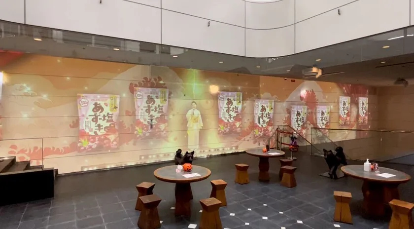 UHA味覚糖 大阪本社(〒540-0016 大阪府大阪市中央区神崎町4-12)のエントランスの壁面にてプロジェクションマッピングを実施!石川さゆりさんが登場し、塩あずきのCMソングを歌うバーチャルコンサートを10月31日(月)から放映いたします。