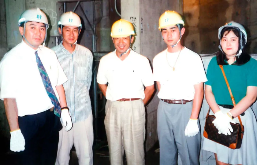 建設現場を下見した際の記念写真(中央が村中伸宜氏)