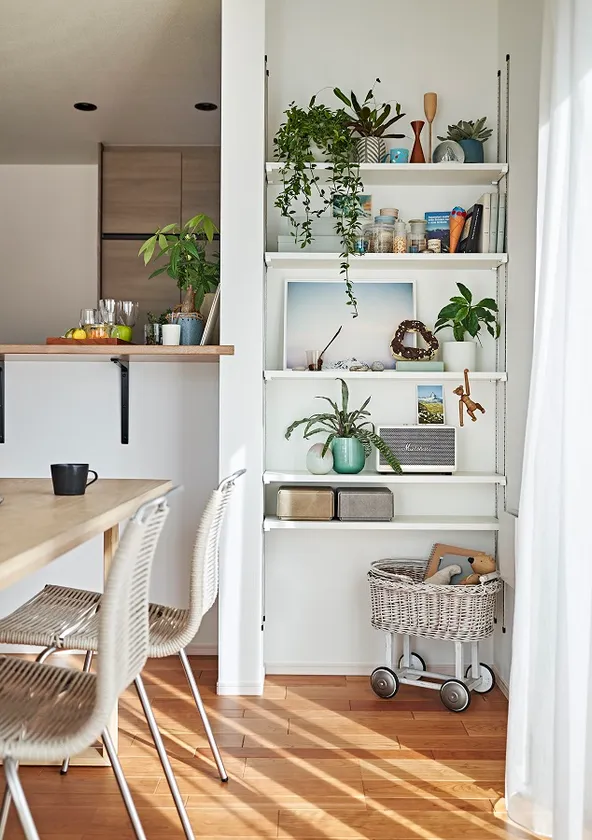 生活スタイルに合わせて用途を変えられるキッチン横の棚