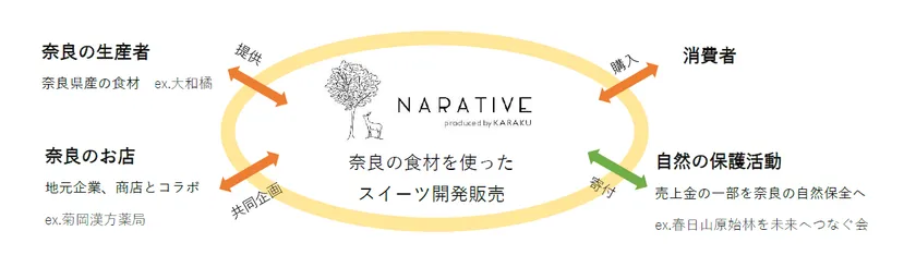 今回、私が暮らす奈良の地で、スイーツづくりという仕事を通じて、何か少しでも地元に恩返しができないかと考えて、生まれたのが「NARATIVE produced by KARAKU」プロジェクトです。