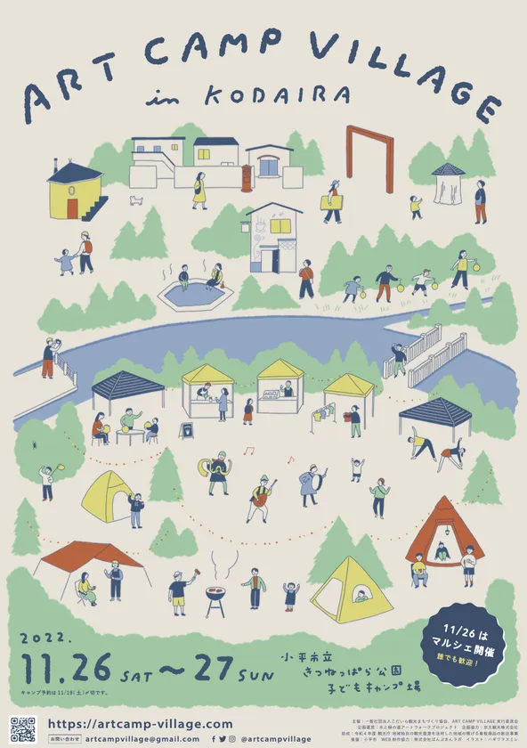 一般社団法人こだいら観光まちづくり協会は、2022年10月21日(金)より、「ART CAMP VILLAGE in KODAIRA」の予約受付を開始します(2022年11月26日(土)~27日(日)小平市立きつねっぱら公園子どもキャンプ場にて開催)。
