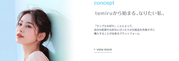 “気になる化粧品を探しテミル?試しテミル?”というコンセプトから生まれたtemiruは、「化粧品選びで失敗したくない」という女性の願いを叶える画期的なサービス。