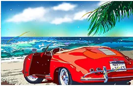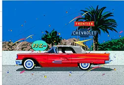 色彩豊かでリアルな独特のタッチで、アメリカのリゾート地やクラシックカーを題材に1980年代からレコードジャケットなど音楽に関連したイラストを描き、今もなお版画作品を発表し活躍している鈴木英人氏。1970~80年代の日本のポップスがシティポップとして世界から注目されたことで、レコードジャケットや音楽雑誌のカバーを手掛けた作品が若い世代からも支持されています。