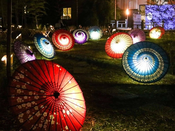 22:00 大浴場露天風呂 ライトアップされた和傘を楽しむ