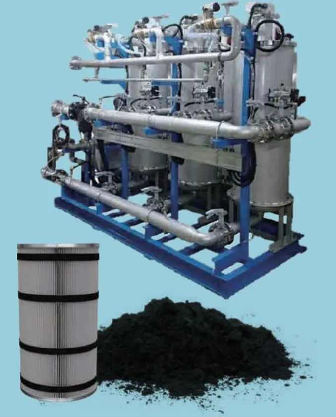 ・機能性粉体を独自のプリーツ型フィルターに添着し、PFAS、BOD・COD・TOC、色度、臭気、有害物質、VOCsなどの溶存物質を吸着除去