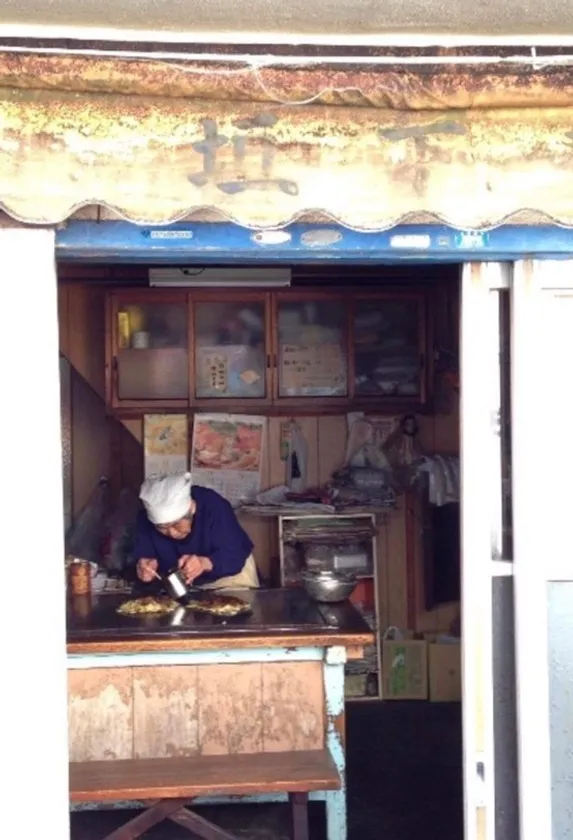 【駄菓子がもらえる創業70年のお好み焼き屋に集まる子供たち】