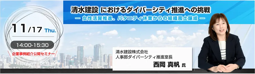 「清水建設におけるダイバーシティ推進への挑戦 ~女性活躍推進、パタニティ休業からの組織風土醸成~」 企業事例紹介公開セミナーを2022年11月17日(木)に開催