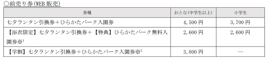 ②「【浴衣限定】七夕ランタン引換券+【特典】ひらかたパーク無料入園券」をお持ちのお客さまは、浴衣を着て来園するとひらかたパークの入園料が無料に!