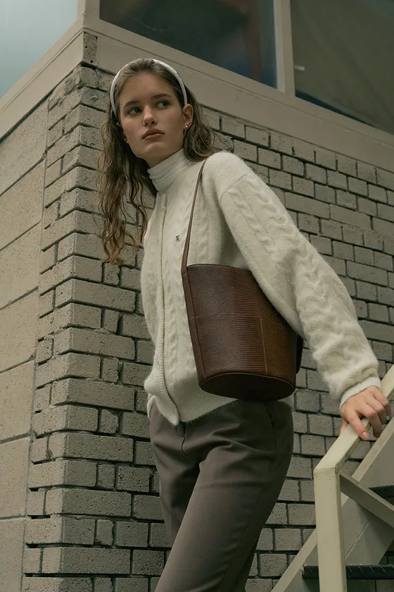 TOP カラーニット(ベージュ)BOTTOM ブーツカットスラックス(ブラウン)BAG 11月発売予定