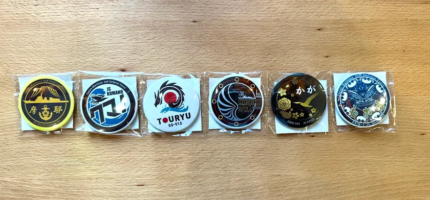 非売品「海上自衛隊 護衛艦缶バッチ(全6種)」を各店の対象商品を購入いただいた計150名様へプレゼントいたします。(※お一人様1点限り、先着順。種類はお選びいただけません。)