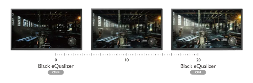 BenQ ZOWIEが提供するBlack eQualizer機能は、明るい部分と暗い部分のバランスを微調整し、最適な画面を表示します。