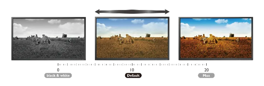 また、Color Vibrance機能は、20段階のフレキシブルな色表示設定が可能で、立体的で迫力ある色を表示します。