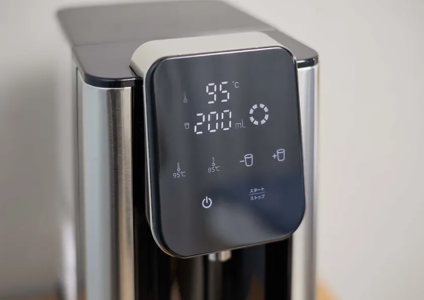 お好みに合わせて、温度と湯量が選べます。設定湯量に到達したら、自動で出湯が止まるので、ほったらかしでOKなのもうれしいポイント。