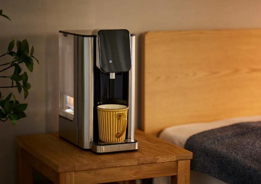 紅茶やコーヒーが好きな社員が「ケトルでお湯を沸かすために席を立つ、お湯が沸いたころにまた席を立ってお湯を注ぐ」というこの動作をもっと楽にできないか、と考えはじめたことがきっかけで誕生しました。