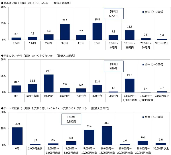 お小遣い額やランチ代、デートで払う飲食代について質問しました。