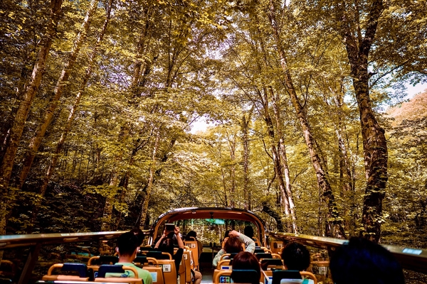 当ツアーのバスは、2階建てかつ、一般的なバスより高い位置に座席が設けられているため、普段遠目で見ることしかできなかった背の高い樹木の紅葉を間近に感じることができ、これまでにない新たな目線で紅葉を楽しむことができます。実際に参加すると、高さ約30メートル以上の樹木や岩壁に囲まれ、まるで紅葉のトンネルを進んでいるかのようです。初めて奥入瀬渓流を訪れる方はもちろん、いつもは車内から見流していた地元の方も、日中の喧騒から離れ、それぞれの目線でじっくりと紅葉狩りを楽しむことができるのもポイントです。360度絶景に囲まれ、紅葉をはじめ自然を全身で感じることで、心身ともにリフレッシュできます。
